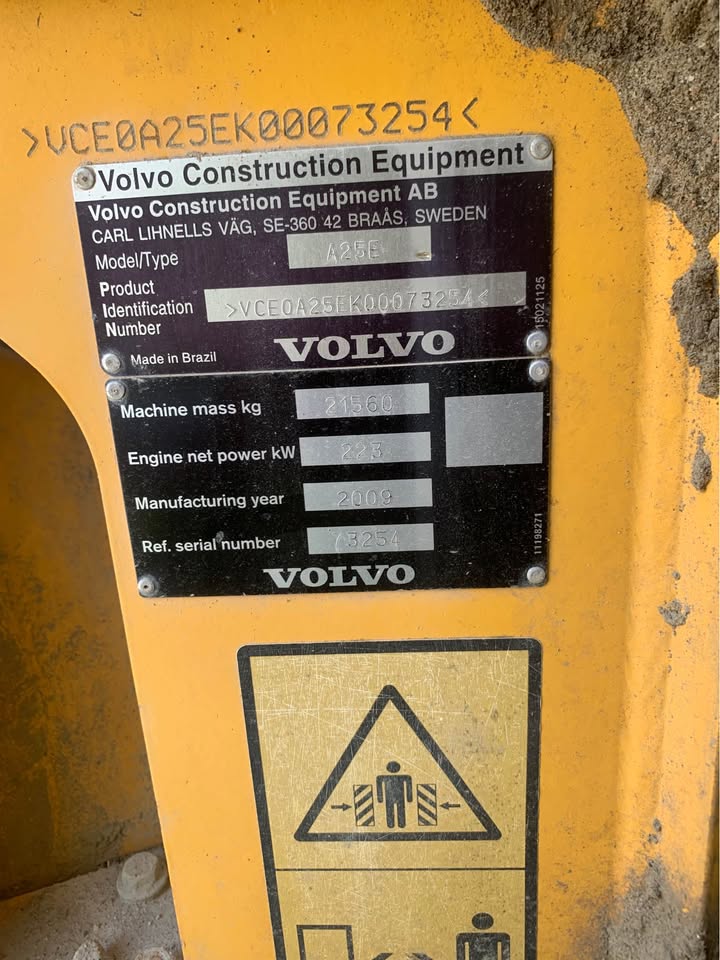 El Volvo A25 de 2009 es un dumper articulado de tamaño mediano (serie A25E o similar), con capacidad de carga útil de 24 toneladas y caja bivalva de 15 m³, diseñado para transporte eficiente en obras de construcción, canteras y minería en terrenos irregulares como los de Colombia.