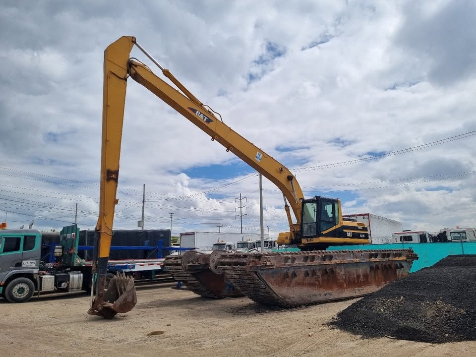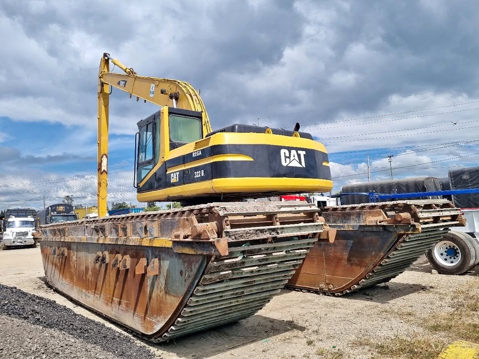 Esta excavadora anfibia Caterpillar 322B es ideal para trabajos en condiciones mixtas tierra-agua, pantanos y terrenos blandos, manteniendo la potencia y versatilidad de una 322B estándar con protección y características especiales para entornos acuáticos
