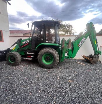 Peso operativo base 7489 kg (4x2 techo ROPS), cucharón frontal 1.3 m³ (ancho 2.08m), retro hasta 0.5 m³—profundidad excav. 5.5m+ y altura vertido 3.3m para eficiencia total. Transmisión Power Shuttle 4F/3R, velocidad máx. 37 km/h con neumáticos 17.5L-24 traseros—estabilidad top en terrenos colombianos.